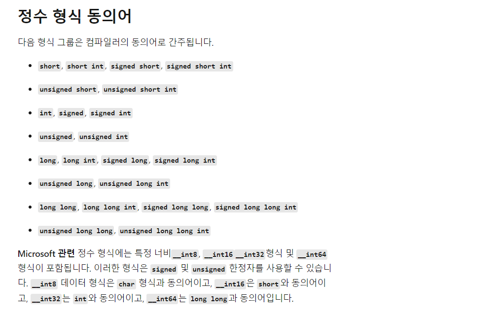 | 4 | unsigned short | 2 byte | 0 ~ 65,535 | WORD | |